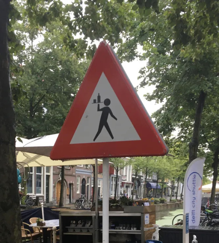 В Нидерландах есть знак, предупреждающий водителей о возможном появлении на дороге официантов, разносящих заказы посетителям кафе и ресторанов.