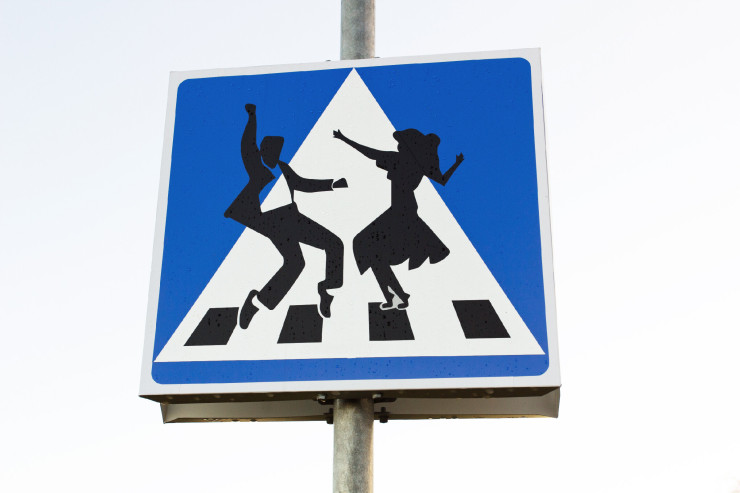 В шведском городе Напаранда некоторые дорожные знаки превращены в арт-объекты. В исторической части города на пешеходных переходах изображены танцующие рок-н-ролл, скачущие рок-гитаристы и пританцовывающие джентльмены. Это привлекает туристов и оживляет городские улицы. Вероятно, авторы вдохновились скетчем "Министерство глупых походок" британской комик-группы "Монти Пайтон".