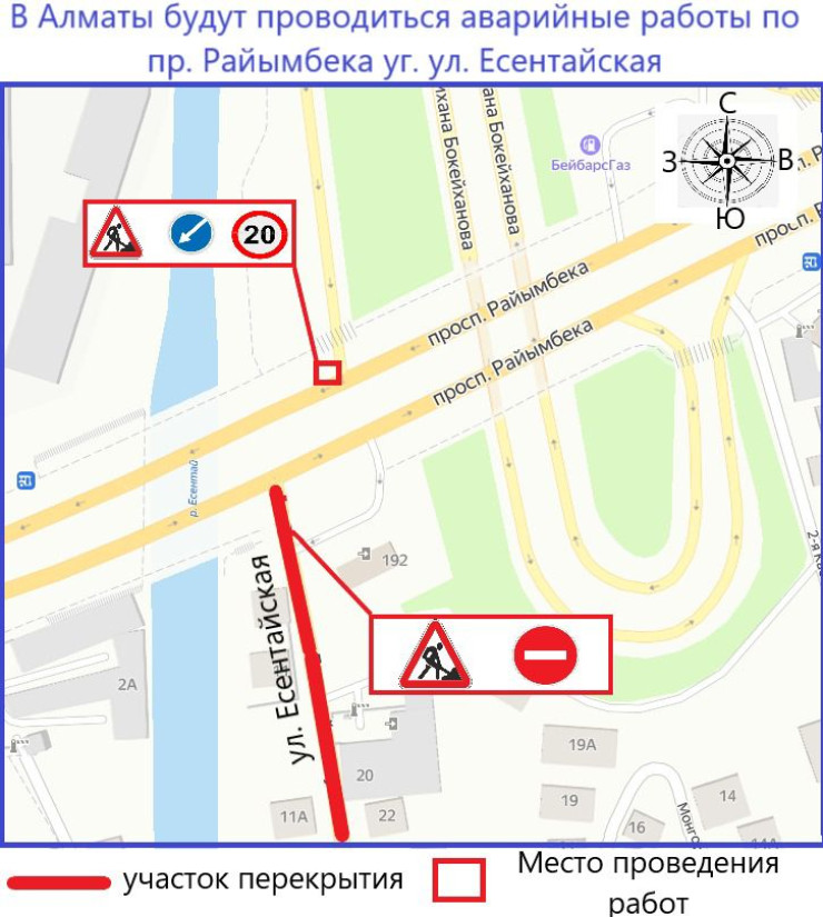 В ТОО "Алматинские тепловые сети" сообщили, что с 8 утра 31 августа до 19:00 2 сентября будет закрыто движение по улице Есентайской от улицы Макатаева до проспекта Райымбека.