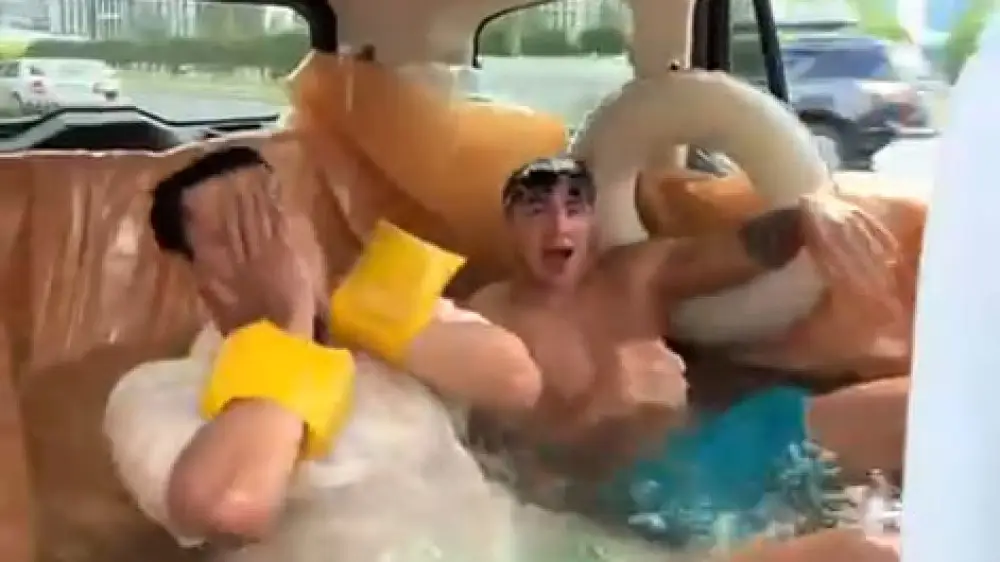 В сети завирусилось видео, на котором жители Астаны залили автомобиль водой, оборудовав его под перевозной бассейн, передает Tengri Auto.