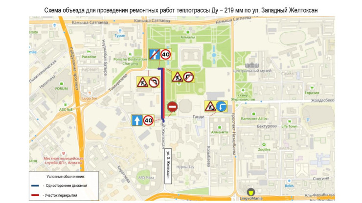 Движение по улице Западный Желтоксан будет: