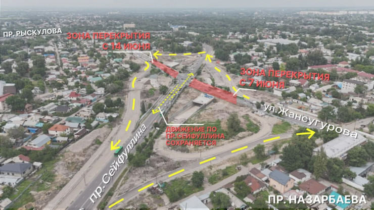 С 14 июня будет ограничено движение по улице Жансугурова севернее проспекта Сейфуллина. Движение также будет обеспечено по съездам. Эта схема будет действовать до 1 сентября.