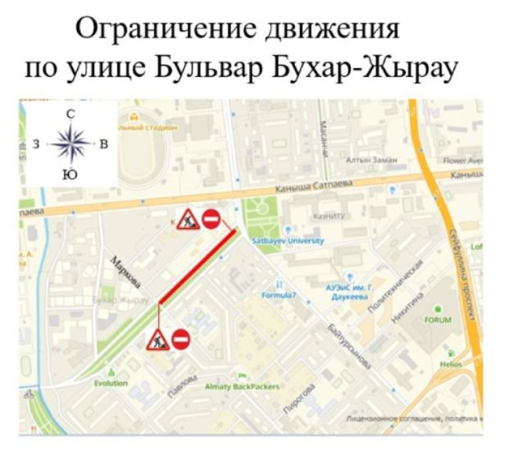 По данным акимата, 17 сентября до 22:00 движение автотранспорта будет закрыто по бульвару Бухар жырау от улицы Байтурсынова до Маркова. Движение будет перекрыто в западном направлении.