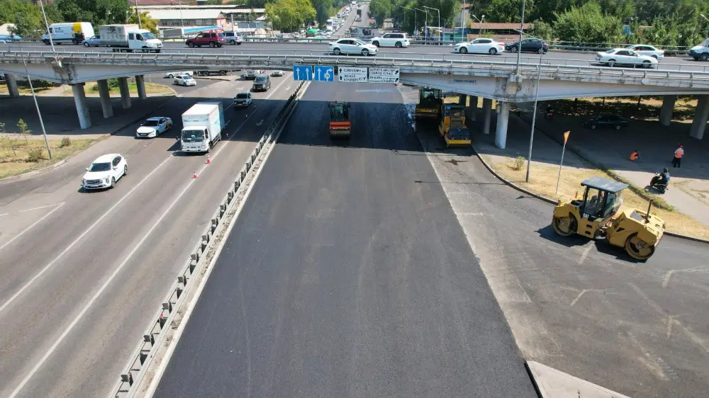 Ремонтные работы на отрезке от моста транспортной развязки Рыскулова - Кудерина до транспортной развязки Рыскулова - Бокейханова начались 11 августа.