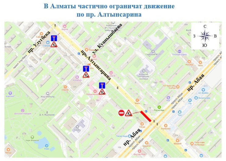 Как сообщает ТОО "Алматинские тепловые сети", движение частично ограничат по проспекту Алтынсарина из-за ремонта теплосетей, передает Tengri Auto.