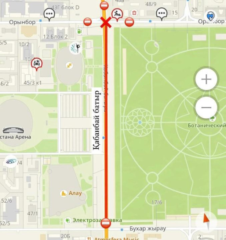 В столичном управлении транспорта и развития дорожно-транспортной инфраструктуры сообщили, что с 07:00 20 июня до 07:00 22 июня участок от улицы Орынбор до улицы Бухар Жырау перекроют полностью по проспекту Кабанбай батыра.