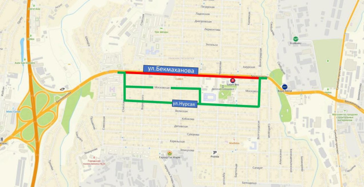 По данным акимата, в Алматы начнутся работы по строительству сетей водоснабжения и водоотведения, из-за чего будет перекрыта одна полоса движения на улице Бекмаханова. На этом участке будет организовано реверсивное движение в восточном направлении.