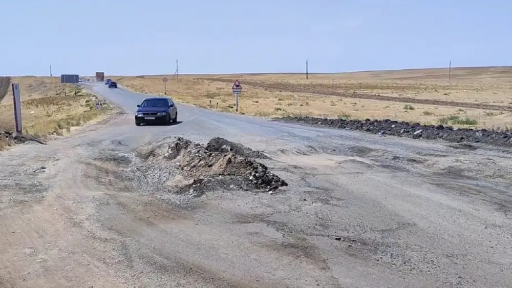 "Областная дорога КХ 92 в Арысском районе под контролем "Оңтүстік Жолдары". Дефекты на данном участке дороги образовалась в связи с периодическим транспортным сообщением большегрузными транспортными средствами, перевозящими сверх установленного объема в виде инертного материала (песок)", - отметил главный инженер предприятия.