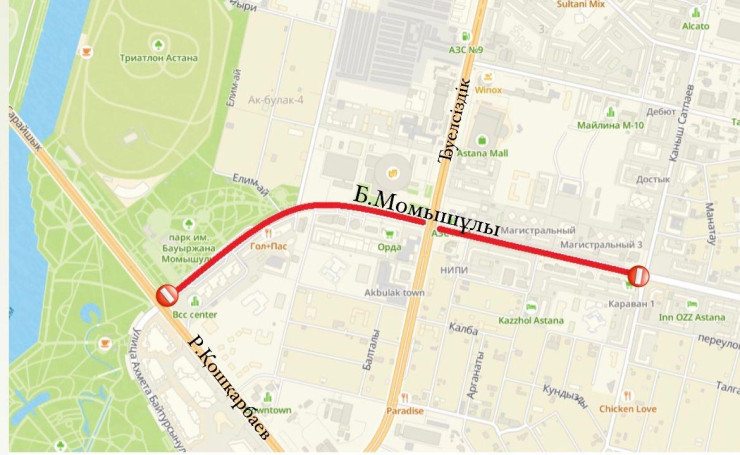 Из-за среднего ремонта дороги по проспекту Момышулы на участке от проспекта Кошкарбаева до улицы Сатпаева частично закроют движение до конца июня, передает Tengri Auto со ссылкой на сайт акимата Астаны.