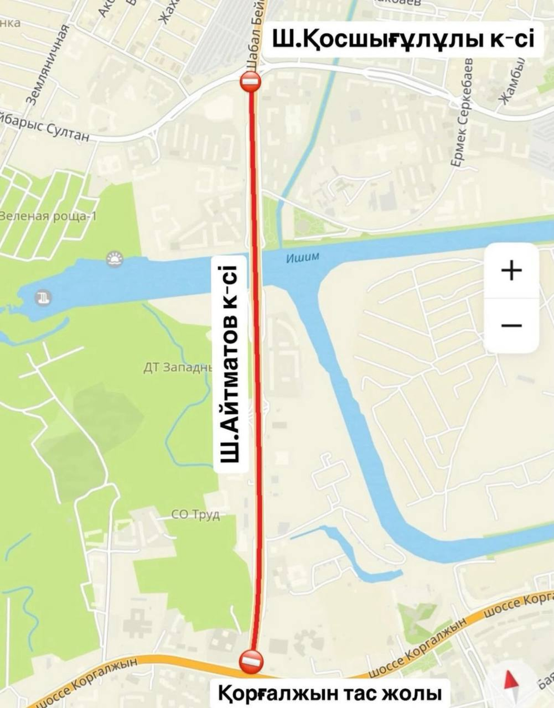 По данным акимата, дорогу перекроют из-за работ по укладке верхнего слоя дорожного покрытия на участке от шоссе Коргалжын до улицы Косшыгулулы.