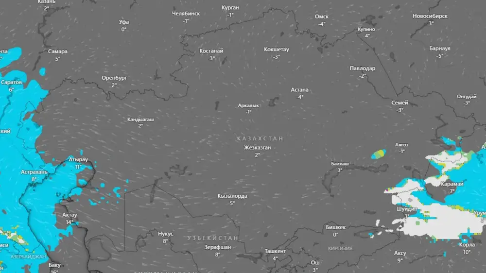 В области Жетысу и Абай местами ожидается дождь со снегом.