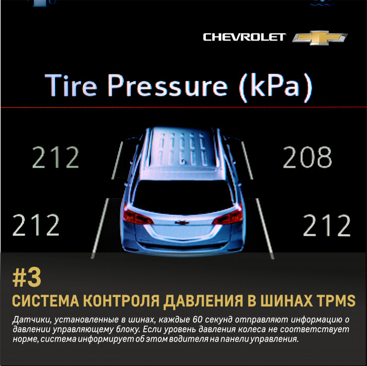 Впервые системы контроля давления в шинах появились на американской военной технике в 90-х годах прошлого века. Сейчас же этим могут похвастаться многие современные автомобили. В частности, все автомобили Chevrolet укомплектованы данной системой.