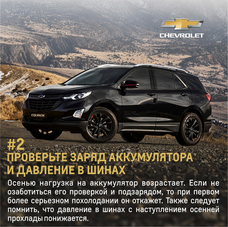Специальная функция в современных автомобилях Chevrolet Tracker, Chevrolet Equinox и Chevrolet Traverse поможет водителю и в этом. Бортовой компьютер предупредит о понижении давления в шинах и подскажет о состоянии заряда аккумулятора.