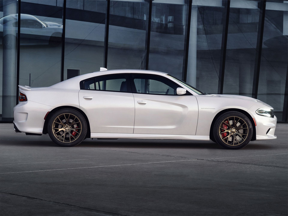Dodge Charger SRT Hellcat получил агрессивный передний бампер, видоизмененный задний бампер, вентилируемый капот, спойлер на багажнике и 20-дюймовые алюминиевые колесные диски с покрышками Pirelli P-Zero.