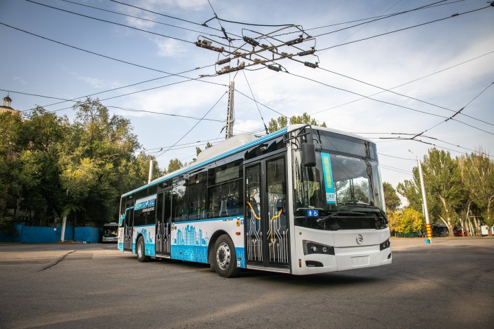 Новый электроавтобус Golden Dragon казахстанской сборки в тестовом режиме проехал по улицам Алматы. Отечественный электробус был предоставлен городу для тестовых испытаний компанией "Астана Моторс".
