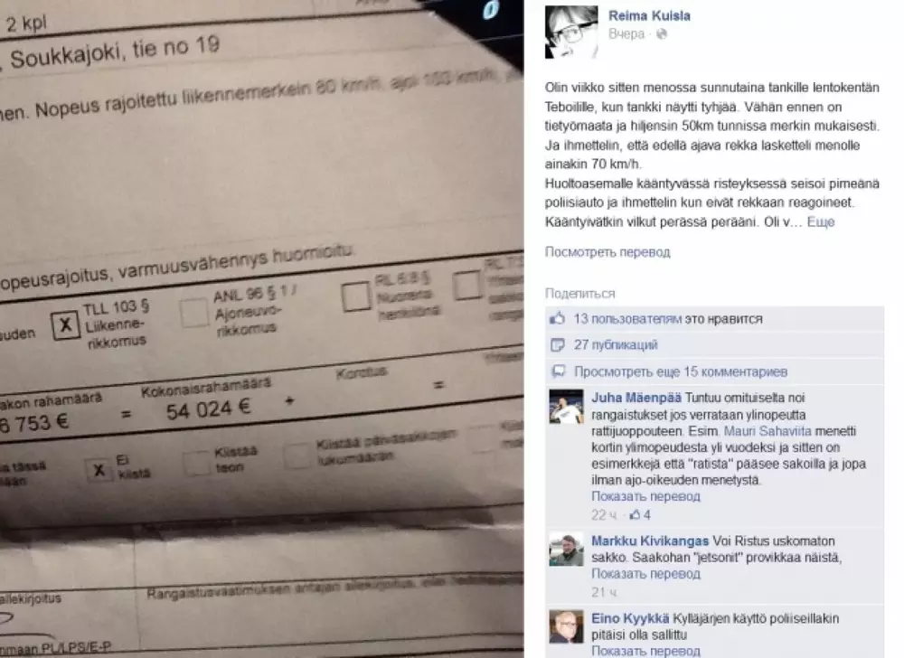 Миллионер был настолько возмущен крупным штрафом, что даже задумался о смене места жительства. "Десять лет назад я бы не поверил, что мне придется серьезно задуматься о переезде... В Финляндии больше невозможно жить людям с высоким доходом!" - написал Рейма Куйсла на своей странице в Facebook.