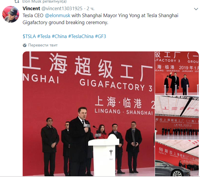 Илон Маск объявил о начале строительства завода Tesla в Китае Фото twitter.com/elonmusk
