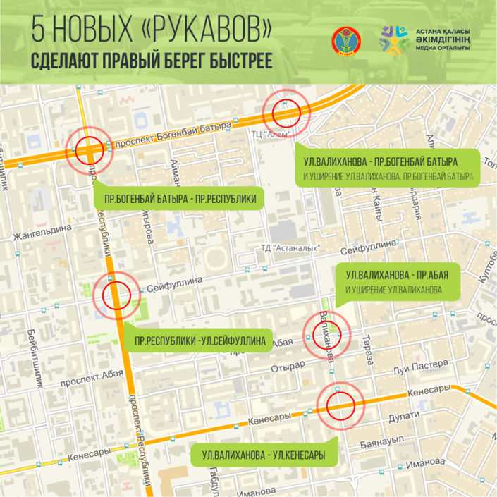 8 новых "рукавов" для правого поворота появятся в Астане