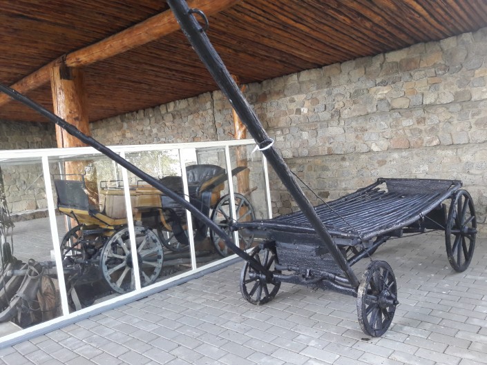 Жидебай қорық алқабы Семей қаласынан 178 шақырым жерде орналасқан. Мына арбалар - ақын Абайдың қолданған көліктері. Музей қызметкерлерінің айтуынша, Абай Семейге жету үшін осы арбалармен екі күн жүрген.
