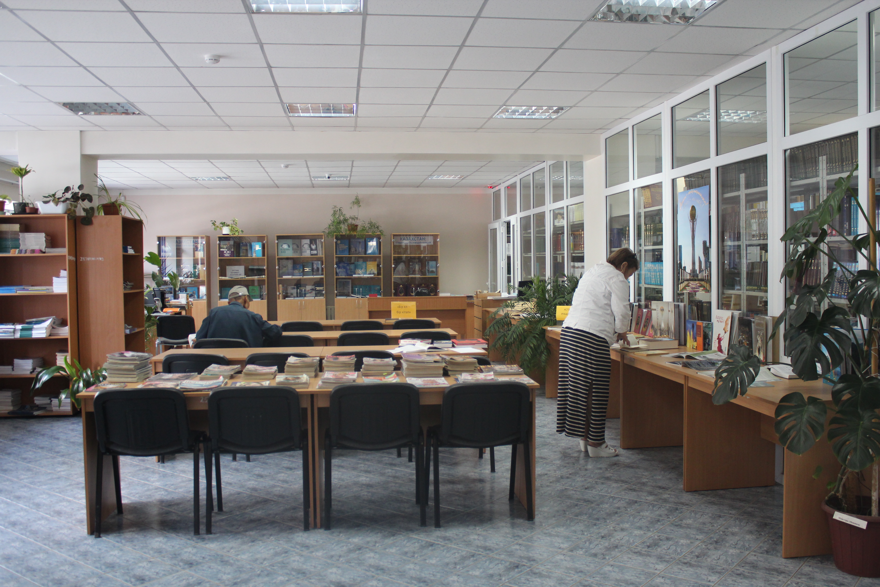 Начали мы с самой крупной библиотеки города - Национальной академической, а именно с отдела художественной литературы. Здесь книги выдаются на дом. "У нас 4700 читателей, в день у нас бывает в среднем по 60 читателей или больше. Молодежи много у нас. Сейчас в летнее время очень много школьников, которые читают по школьной программе, мы помогаем им выбирать литературу. Пенсионеры тоже приходят. Вообще, контингент у нас разнообразный, можно сказать, что все ходят, кто любит читать", - сказала руководитель абонемента художественной литературы Майра Нурканова.