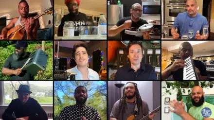 Вокальная партия Меркьюри досталась Ури, Фэллон спел строчки Дэвида Боуи. Создание аккомпанемента в "карантинном стиле" взяла на себя группа The Roots: ее участники использовали не только обычные музыкальные инструменты, но и кухонную утварь, которую можно найти в любом доме, - ложки, крышки, кастрюли, бокалы и даже тостер.