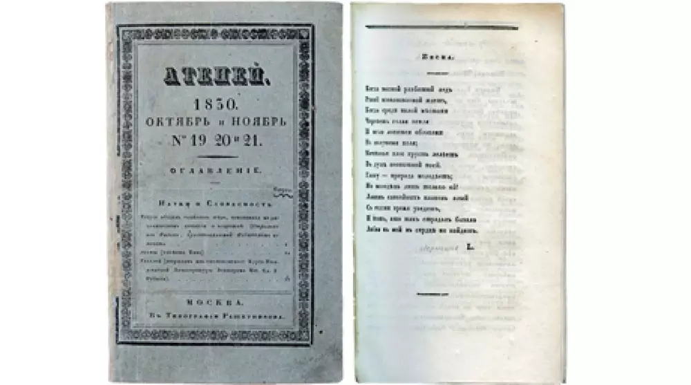 Первое напечатанное стихотворение поэта Михаила Лермонтова "Весна" оценили в 700 тысяч рублей (3,5 миллиона тенге), с такой стартовой ценой лот выставили на аукцион "Старинные и редкие книги, карты, гравюры", сообщается на сайте аукционного дома "Кабинетъ".. Торги состоятся 23 апреля в Центральном доме художника в Москве. Произведение было опубликовано в 1830 году в альманахе "Атеней". Стоит отметить, что на аукцион выставляется один экземпляр в бумажном варианте. Лот содержит само стихотворение "Весна": Когда весной разбитый лед Рекой взволнованной идет, Когда среди полей местами Чернеет голая земля И мгла ложится облаками На полуюные поля, - Мечтанье злое грусть лелеет В душе неопытной моей; Гляжу, природа молодеет, Но молодеть лишь только ей; Ланит спокойных пламень алый С собою время уведет, И тот, кто так страдал, бывало, Любви к ней в сердце не найдет. Кроме того, в списке лотов можно найти прижизненное издание "Евгения Онегина" Александра Пушкина. Оно оценивается в 1,6-2,5 миллиона рублей. Лермонтов посвящает Екатерине Александровне 11 стихотворений, составивших "сушковский цикл" его любовной лирики.
