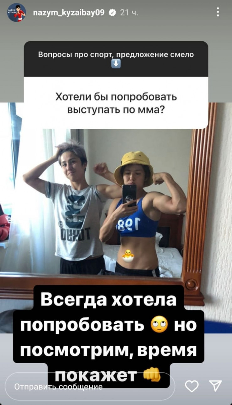 Казахстанская боксерша Назым Кызайбай ответила на вопросы своих подписчиков в Instagram, сообщают Vesti.kz, передает Tengrinews.kz.