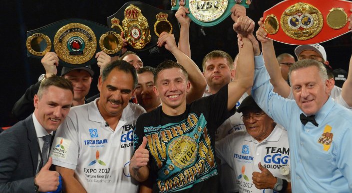 Чемпион мира по версиям WBA (Super), IBF, IBO и WBC (Interim) в среднем весе казахстанский боксер Геннадий Головкин одержал победу над американцем Домиником Уэйдом, передает корреспондент Tengrinews.kz. Поединок, состоявшийся в Лос-Анджелесе на арене "Форум", завершился уже во втором раунде.