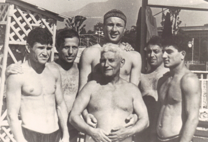 С членами сборной ЦС "Спартак" в Алуште, подготовка к международной встрече с норвежцами. 1958 год. © isrageo.com