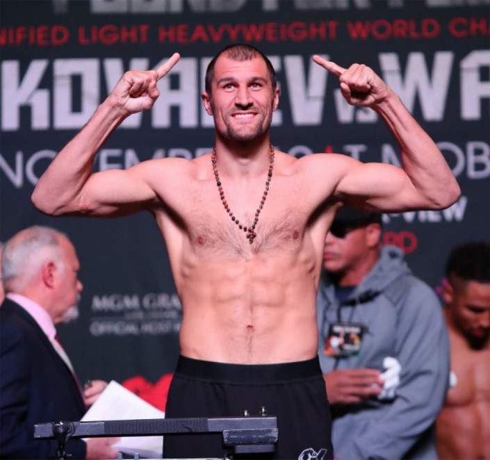 18 ноября в Лас-Вегасе состоялась процедура взвешивания перед боксерским шоу, главным событием которого станет бой чемпиона мира в полутяжелом весе россиянина Сергея Ковалева (30-0-1, 26 КО) с американцем Андре Уордом (30-0, 15 КО), сообщает портал Vesti.kz. Оба боксера показали на весах одинаковый вес - 175 фунтов (79,4 килограмма).