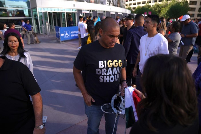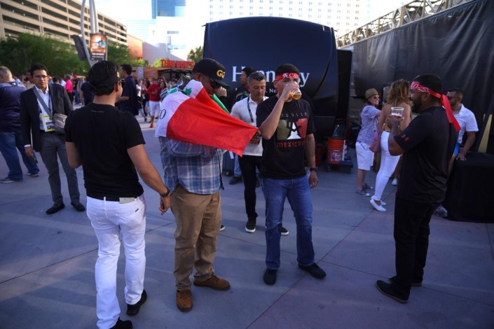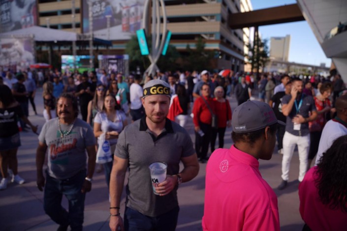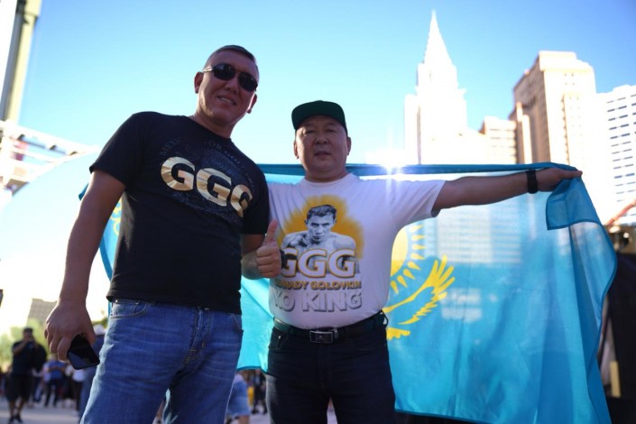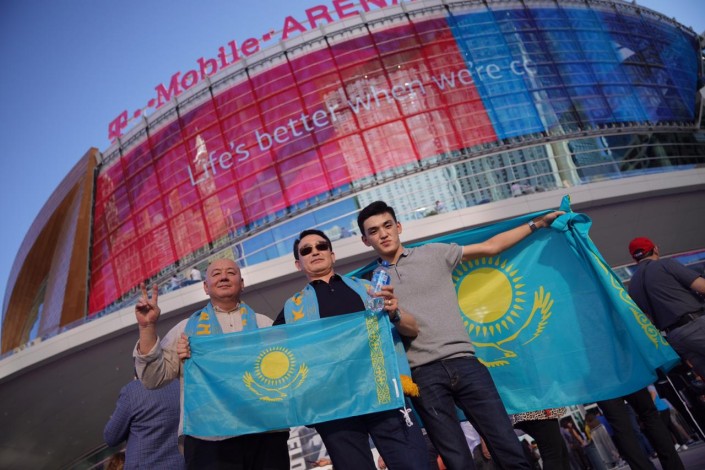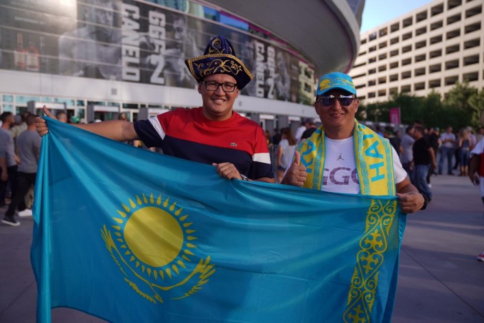 Перед началом боя возле арены T-Mobile в Лас-Вегасе можно было увидеть много людей с казахстанскими флагами.