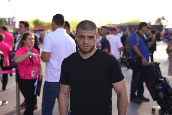 Боксер Руслан Мадиев возле арены.