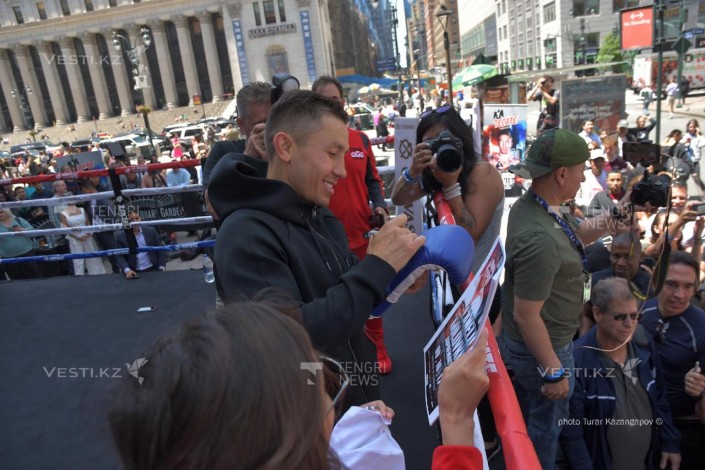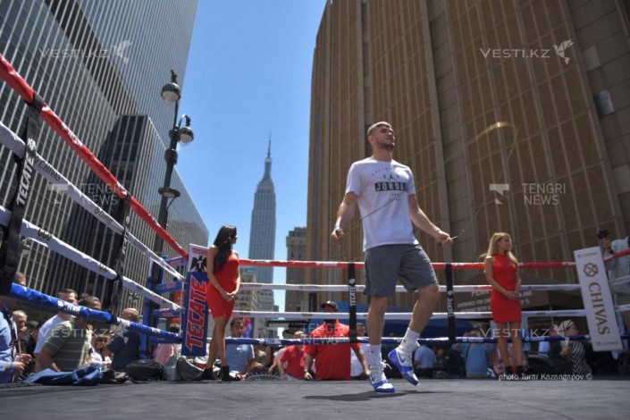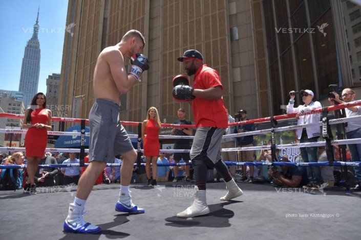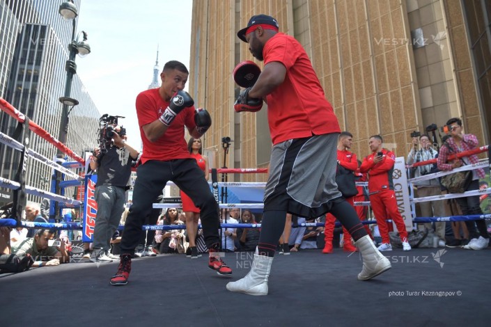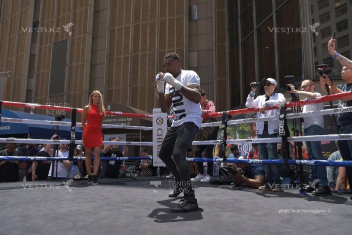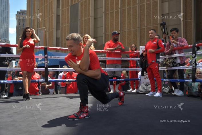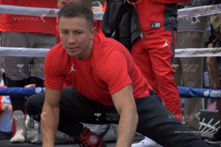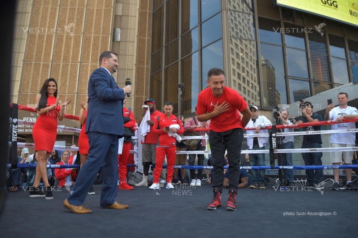 В эти минуты проходит открытая тренировка казахстанца Геннадия Головкина и канадца Стива Роллса перед боем, передает Тengrinews.kz со ссылкой на Vesti.kz.
