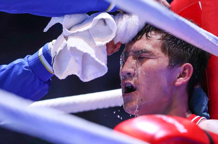 Казахстанец Аманкул Абильхан, выступающий в весовой категории до 75 килограммов, также стартовал с победы на чемпионате Азии. В первом бою 19-летний Аманкул встречался с китайцем Юн Хан Веном и уверенно победил по очкам - 3:0. В дебютном раунде казахстанец отправил соперника в нокдаун ударом левой руки - рефери отсчитал нокдаун.