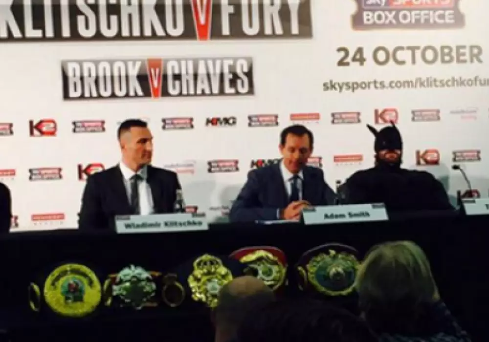 В этом облачении Фьюри вбежал в конференц-зал, держа выставленную вперед правую руку и сжимая кулак, сделал круг по залу и занял место за столом. Пресс-конференция прошла в Лондоне.