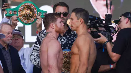Головкин и Альварес определят в очной встрече абсолютного чемпиона мира в дивизионе: боксеры разыграют титулы IBF, WBA Super, WBO и WBC, которые принадлежат мексиканцу.