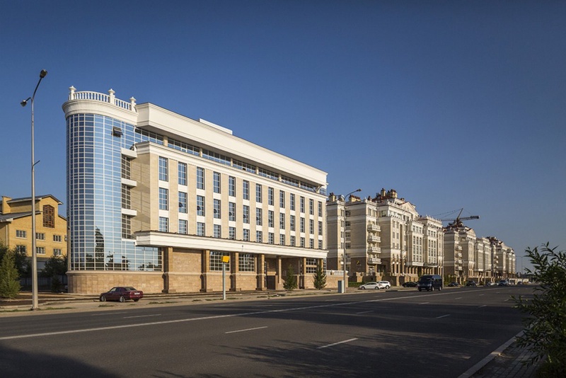 "Одной из особенностей архитектурного решения бизнес-центра стал сплошной полукруглый витраж с первого по пятый этаж, - рассказывает руководитель проекта Асылхан Утенов. - Проектом также предусмотрен зенитный фонарь (стеклянная кровля), который обеспечивает максимально возможную естественную освещенность внутри помещения, придавая интерьеру законченность и гармоничность".