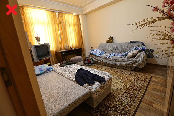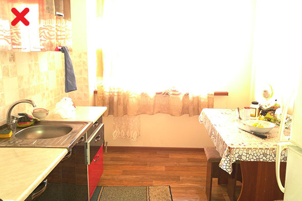 Если дома есть потрепанные ковры, но при этом хорошее напольное покрытие, ковры лучше на время убрать. То же касается других предметов интерьера неприглядного вида. В пользу вашей квартиры также не сыграют выцветшие шторы, покосившийся стол или истерзанный кошкой любимый диван. Да, это вещи, которые к продаже квартиры отношения не имеют, однако могут создать негативное впечатление при просмотре объявления.