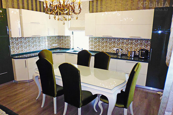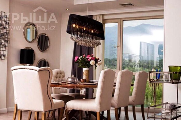 Пятое место досталось четырехкомнатной квартире в монолитном ЖК AFD Plaza, возведенном в Медеуском районе в 2014 году. Общая площадь составляет 172 квадратных метра. Имеются кухня-студия, несколько санузлов, балкон, лоджия, охраняемый паркинг, видеодомофон. Жилье меблировано в стиле барокко. На всей территории комплекса ведется видеонаблюдение, есть консьерж. Ежемесячный платеж - 1,5 миллиона тенге.