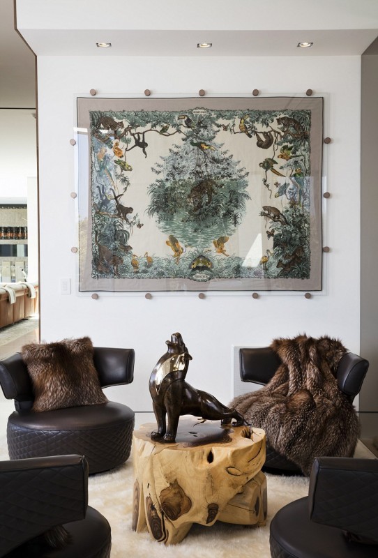 Вместе с домом покупатель получит коллекцию автомобилей общей ценой в 30 миллионов долларов, среди которых есть как раритетные авто 1930-х годов, так и современные суперкары, такие как Bugatti. На крыше находится вертолетная площадка с частным вертолетом.