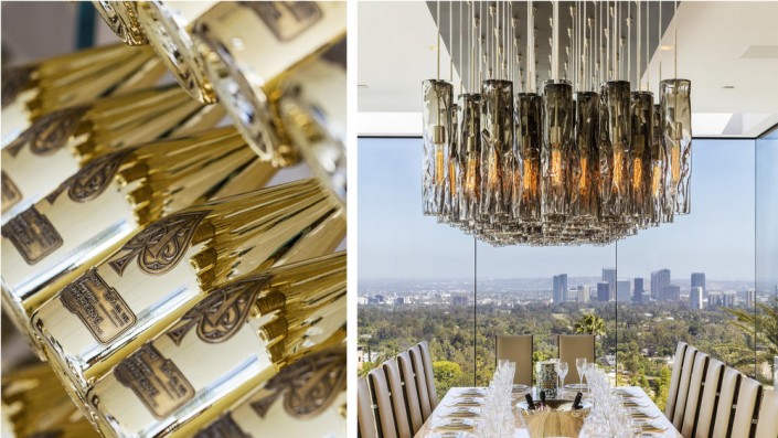 Площадь недвижимости, расположенной в элитном районе Бель-Эйр, составляет 3 530 квадратных метров. В доме 12 спален, 21 ванная комната, три кухни, боулинг, кинотеатр на 40 человек, 85-метровый бассейн с живописным видом и баром, спа, фитнесс-зал, два винных погреба, а также "конфетная комната", заполненная сладостями на 200 тысяч долларов. Особняк украшен 130 произведениями искусства.