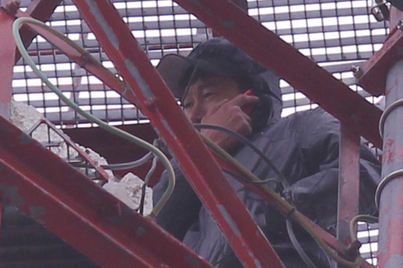 Мужчина, в возрасте около тридцати лет, взобрался на вышку железнодорожной связи и распил там бутылку водки. После этого он стал грозиться покончить с жизнью. Личность мужчины пока не установлена. Полицейский психолог ведет с ним переговоры. Мужчина требует, чтобы полиция привезла его жену. Ее личность тоже пока не установлена. Кроме полиции на месте события работают сотрудники ЧС и врачи.