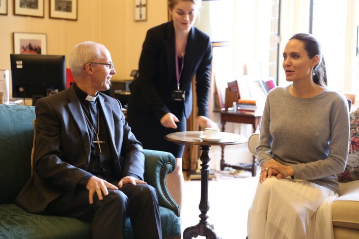 Знаменитая голливудская актриса Анджелина Джоли навлекла на себя гнев и недоумение пользователей своим нарядом, в котором она совершила официальный визит к архиепископу Кентерберийскому Джастину Уэлби, сообщает International Business Times.