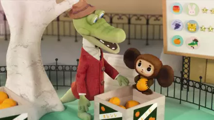 Мультфильм начинается почти так же, как советский оригинал: Гена работает в зоопарке и неожиданно находит в ящике с апельсинами Чебурашку.