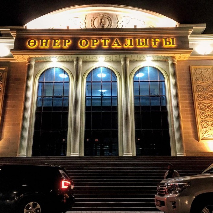 "Актюбинск. Центр Искусств. Величественный Дворец! Международный Театральный Фестиваль им. Тахауи Ахтанова. Благодарю своего казахского зрителя! В зале присутствовали мои коллеги из международных трупп. Профессиональная публика - это очень ответственно, но и очень легко! После спектакля за кулисами, подрались два зрителя. Кто-то кого-то оскорбил. Я их разнял и мы вместе сфотографировались с улыбками на лицах! В общем, все были счастливы!" - написал артист (здесь и далее орфография и пунктуация в основном сохранены).