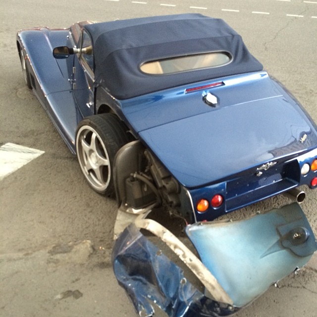 Фотографии с места происшествия актер выложил на своей странице в Instagram. "Все! Нету Моргана!" - написал он и добавил: "Припарковался". Модель, на которой передвигался Куценко, называется Morgan Aero 8.