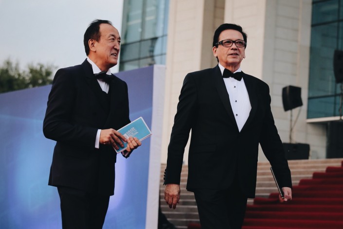 Глава организационного комитета Аскар Бекбаев с директором кинофестиваля "Евразия" Рашидом Нугмановым