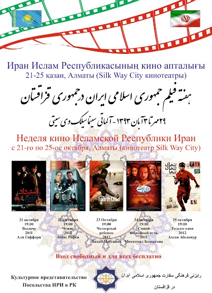 Алматинским зрителям во время недели иранского кино будут показаны пять отобранных кинолент: "Выдача", "Чужие", "Четвертый ребенок", "Синий шелковый путь" и "Только один". Во время показов будут присутствовать кинопродюсеры из Ирана, в том числе директор международного кинофестиваля “Фаджр” Мохаммад Хазайи, Пежман Лашгарипур и руководитель международного кинофестиваля Реза Хазали. Они планируют провести переговоры с казахстанской стороной о создании совместной работы.