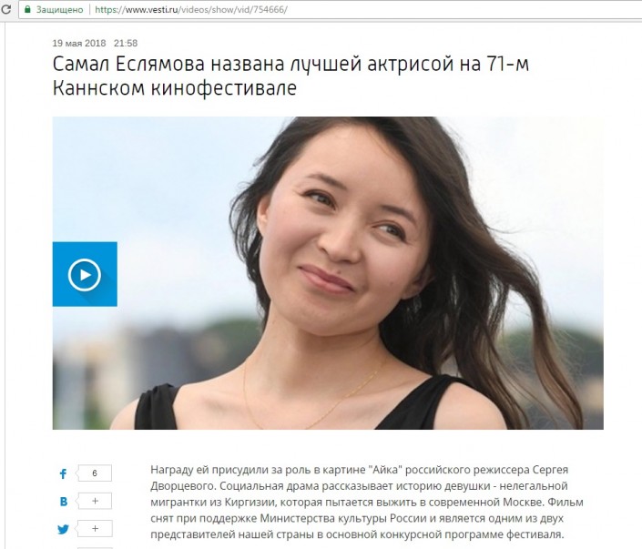 Как российские СМИ отреагировали на победу Самал Еслямовой в Каннах