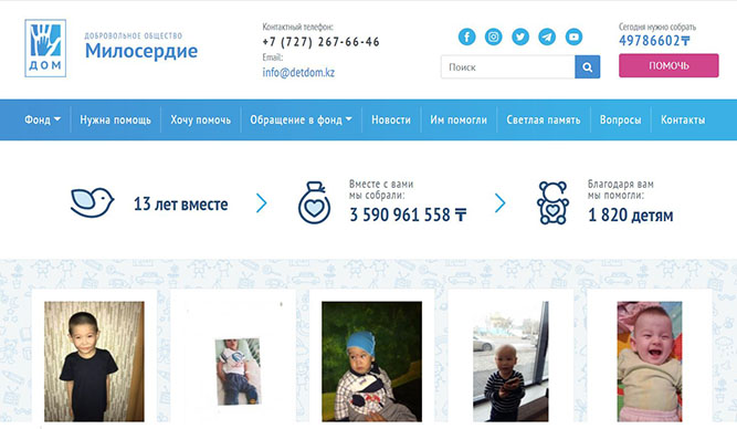 У нас есть сайт, где мы размещаем информацию о детях, которым нужна помощь, а также подробную информацию о поступлениях и тратах.